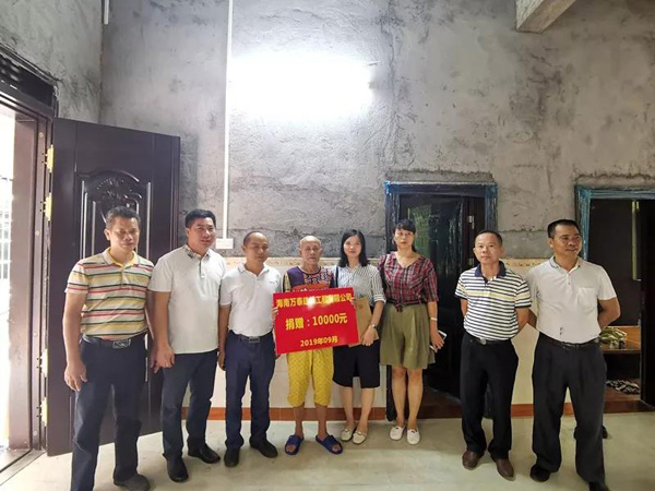 首先,海南萬泰領(lǐng)導一行來到龍?zhí)伶?zhèn)文道村委會洋溶村慰問特困戶杜承國。由于杜承國家地處偏僻,道路運輸不便,人工成本較高,政府危改補貼有限,無法支持杜承國將新房建好。海南萬泰建筑工程公司慷慨解囊,捐贈20000元幫助杜承國完成危房改造工作,安心入住新房。杜承國接到資助款非常激動,表示在自己為錢發(fā)愁的時候,海南萬泰及時伸出了援手,讓他能付清建房款項,早日住上新房,他非常感謝政府和海南萬泰建筑工程公司的關(guān)心和支持。