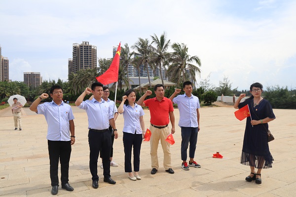 大家頭頂烈日,在解放海南烈士紀(jì)念碑前重溫入黨誓詞,高唱紅歌,瞻仰登陸作戰(zhàn)烈士名單,深切感受到了革命先烈的澎湃激情和高尚精神。