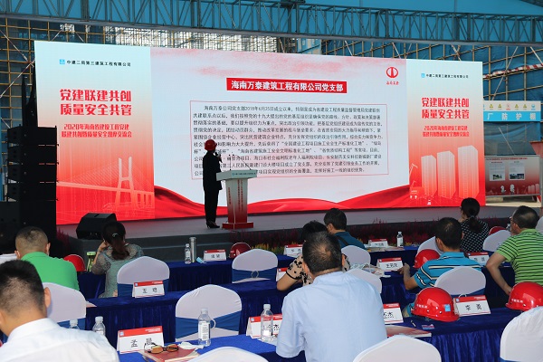 為了進一步加強黨建聯(lián)系點的溝通交流,繼續(xù)深入推進黨建聯(lián)創(chuàng)共建工作,鞏固抓黨建促工程質(zhì)量安全水平提升的成效。9月25日上午,2020年海南省建設工程黨建聯(lián)建共創(chuàng)暨質(zhì)量安全觀摩交流會在南光·西海灣項目部舉行。省住建廳機關(guān)黨委專職副書記劉志偉、省質(zhì)安局陳雷書記、省質(zhì)安局副局長劉長征、市質(zhì)安站站長符志明及各黨建聯(lián)創(chuàng)共建企業(yè)黨支部、新聞媒體等單位參加了此次活動。海南萬泰公司黨支部作為省住建系統(tǒng)黨建聯(lián)系點參加了會議,并做了黨建工作經(jīng)驗交流發(fā)言。