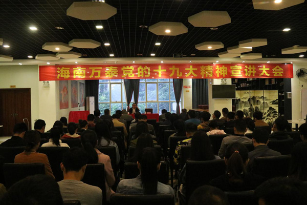 為深入貫徹十九大精神,落實十九大精神入基層、進企業(yè)的要求,11月25日,湖北省政府駐海南辦事處主任、湖北省駐瓊黨工委書記黃烈焰;副主任、黨工委副書記馮??;海南省湖北商會常務副會長、五指山清能地產公司董事長羅曉東組成的宣講團到海南萬泰建筑工程有限公司宣傳貫徹黨的十九大精神。