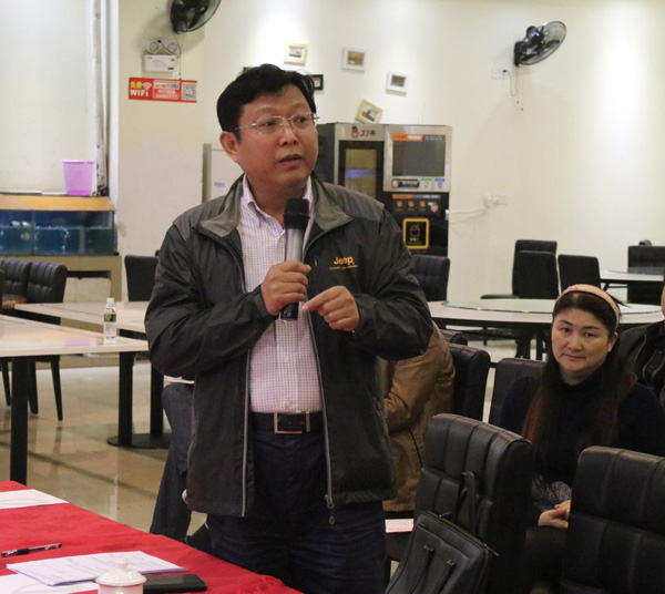 結合企業(yè)發(fā)展實際,海南萬泰公司總經理張小龍從“一個目標”、“四個不變”、“三個步驟”、“四個意識”、“五位一體”五個方面進一步闡述了如何將十九大精神融入到企業(yè)發(fā)展當中,讓十九大精神在萬泰落地生根、開花結果。張總強調,萬泰的總目標是“讓所有員工共同過上體面的生活”。以這個目標為出發(fā)點,要始終保持“面對強有力的競爭力不變”、“艱苦耐勞的精神不變”、“堅持職業(yè)道德底線不變”和“對公司的忠誠不變”四個不變;謀劃未來發(fā)展三個步驟,即2018年成立黨支部、2021年取得特級企業(yè)資質、2021年爭創(chuàng)建筑工程魯班獎;恪守“政治意識、大局意識、核心意識、看齊意識”四個意識,一是舉辦十九大精神宣講會,積極傳播正能量,二是做有擔當的萬泰人,始終把公司利益擺在首位,三是以公司發(fā)展為核心,團結奮進,四是向公司看齊,保持對公司的信任;最后,張總還結合“創(chuàng)新、協(xié)調、綠色、開放、共享”的五位一體發(fā)展觀,深刻闡釋了“合股·溝通·包容·共贏”作為企業(yè)新的發(fā)展目標,對未來公司發(fā)展戰(zhàn)略的重要意義。