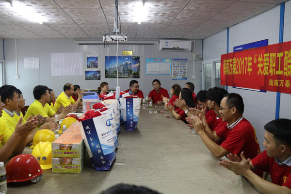 海南萬泰在追求企業(yè)發(fā)展的同時(shí),始終把民工利益擺在重要位置,關(guān)愛民工工作生活。長(zhǎng)期以來,海南萬泰都對(duì)一線工人的生產(chǎn)生活格外重視,通過節(jié)日慰問、送清涼等一系列活動(dòng),深切表達(dá)公司領(lǐng)導(dǎo)及同事對(duì)長(zhǎng)期駐扎一線的項(xiàng)目工人的關(guān)懷之情。