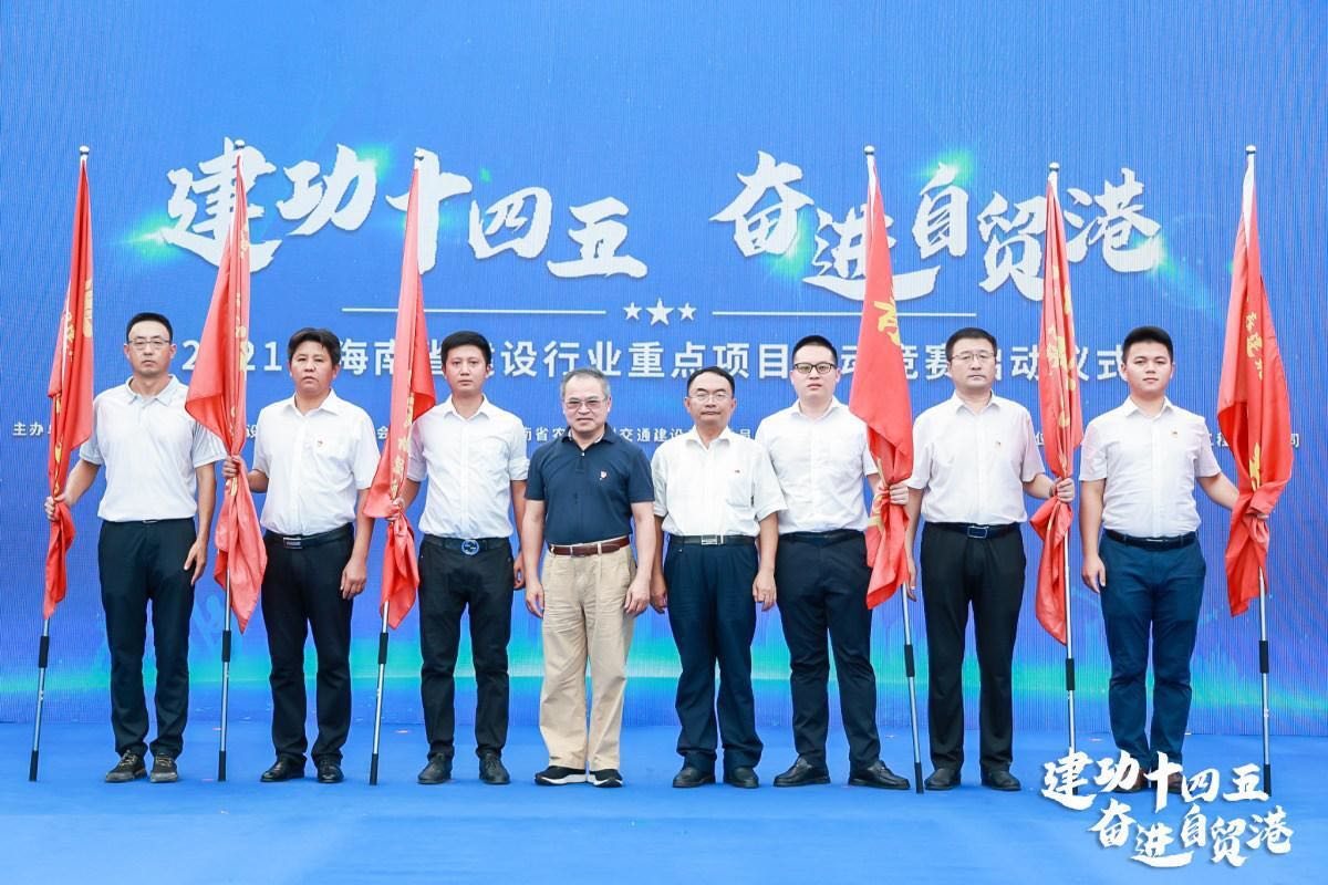 此次勞動競賽活動以“建工十四五 奮進自貿港”為主題,以“六比一創(chuàng)”:比黨建引領、比工程質量、比技術創(chuàng)新、比科學管理、比文明施工、比安全生產、創(chuàng)優(yōu)質工程為主要內容,全省30家建筑企業(yè)參賽單位代表共150余人參加了啟動儀式,大會為獲得2021年企業(yè)青年突擊隊稱號的6家建筑企業(yè)授予榮譽錦旗,海南萬泰是6家被授旗的企業(yè)之一,也是唯一一家民營企業(yè)。