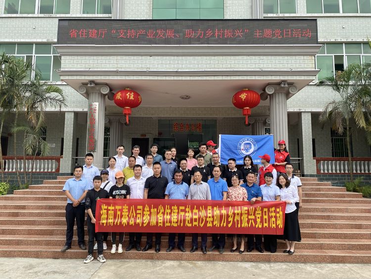 為發(fā)揮企業(yè)力量,推進(jìn)鄉(xiāng)村產(chǎn)業(yè)發(fā)展,促進(jìn)黨建工作同鄉(xiāng)村振興有效銜接,助力海南自由貿(mào)易港建設(shè),按照省住建廳《支持產(chǎn)業(yè)發(fā)展助力鄉(xiāng)村振興主題黨日活動(dòng)方案》的相關(guān)要求,3月19日, 海南萬(wàn)泰公司參加了省廳機(jī)關(guān)黨委組織的赴白沙縣七坊鎮(zhèn)高石村開(kāi)展的主題黨日活動(dòng)。省住建廳機(jī)關(guān)黨委專職副書(shū)記莫百超、辦公室副主任楊洲、廳相關(guān)部門(mén)負(fù)責(zé)人及中化學(xué)建設(shè)(海南)公司、中建三局集團(tuán)(海南)公司、廣西建工集團(tuán)四公司、湖南省第六工程公司、中誠(chéng)投集團(tuán)八局、中建中聯(lián)集團(tuán)、湖南省湘天建設(shè)公司等企業(yè)相關(guān)人員參加了本次活動(dòng)。