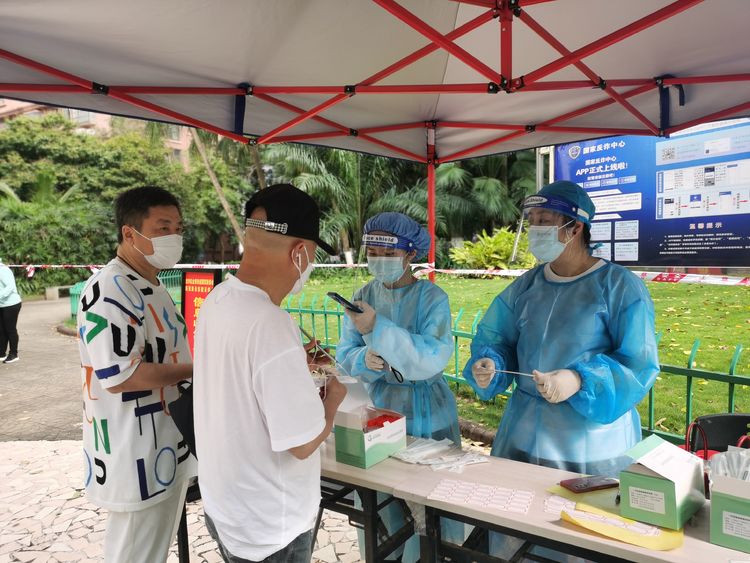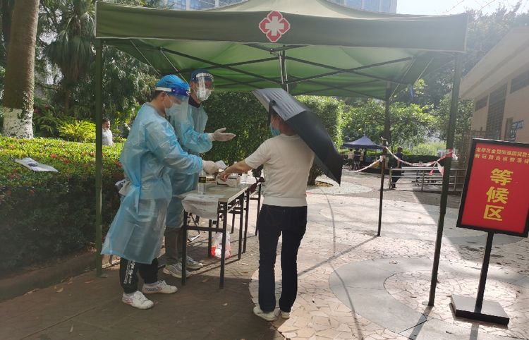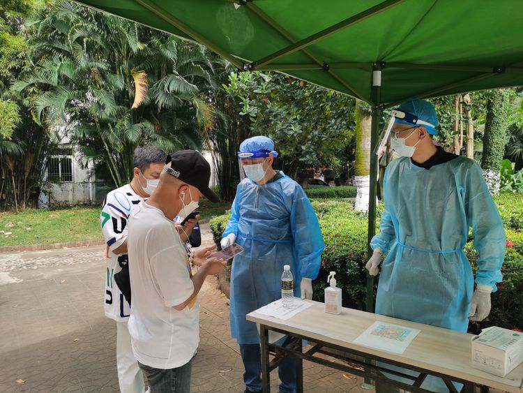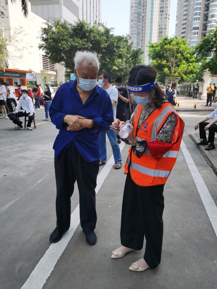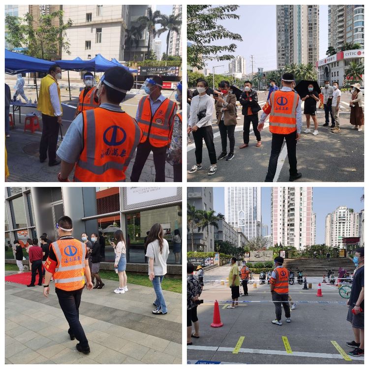 不忘初心,肩負擔當。4月6日,龍華區(qū)政府進行了主城區(qū)全員核酸檢測工作,在公司常務(wù)副總顏利的帶領(lǐng)下,公司員工分批次,有秩序, 有組織地奔赴金貿(mào)街道轄區(qū)內(nèi)的置地花園、電力村、??跒?、百方廣場等區(qū)域核酸檢測點,協(xié)助開展核酸檢測工作,做好現(xiàn)場秩序維護?!罢埓蠹议g隔1米排好隊”“請戴好口罩,提前打開健康碼”……從中午到晚上9時,海南萬泰公司的員工堅守崗位盡職盡責,維護好核酸檢測人員隊伍秩序,耐心解答群眾的疑問,安撫焦急等待的心情,幫助群眾操作健康碼,引導老人、孕婦優(yōu)先檢測,充分彰顯了無私奉獻的志愿精神。