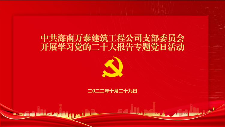 金秋十月,山河錦繡。為深入學(xué)習(xí)貫徹黨的二十大報(bào)告,領(lǐng)悟會(huì)議精神,堅(jiān)定理想信念,2022年10月29日,海南萬(wàn)泰公司聯(lián)合金貿(mào)街道商會(huì)組織開(kāi)展學(xué)習(xí)黨的二十大報(bào)告專題黨日活動(dòng)。