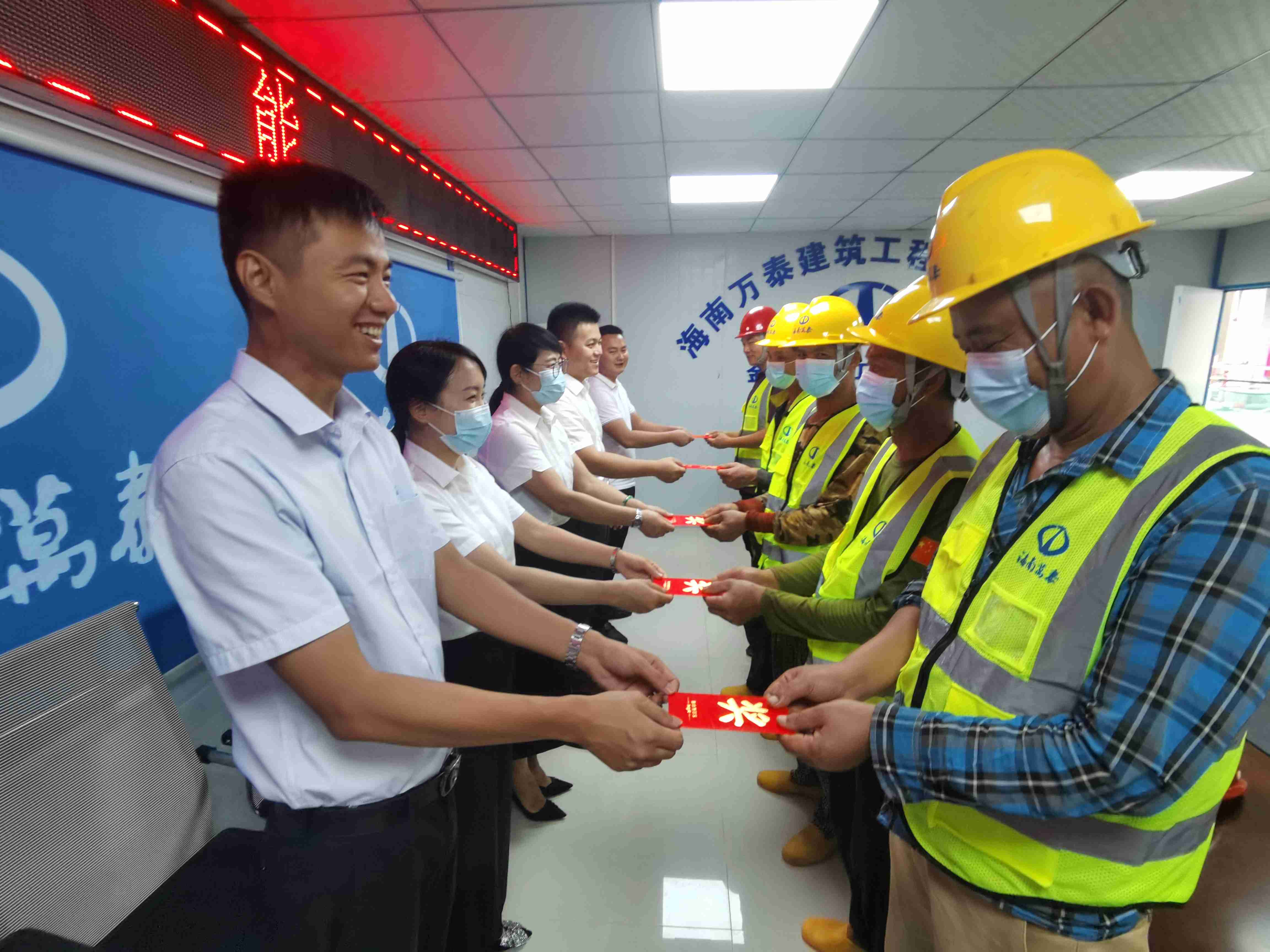 為了學(xué)習(xí)貫徹黨的二十大報(bào)告,把二十大精神落實(shí)到推動(dòng)企業(yè)高質(zhì)量發(fā)展過(guò)程中,表彰先進(jìn),樹立典型,進(jìn)一步增強(qiáng)員工的自豪感、集體榮譽(yù)感及團(tuán)隊(duì)凝聚力,2022年11月18日,在省建設(shè)工會(huì)的支持下,海南萬(wàn)泰公司組織人員到公司承建的瓊海金輝雅苑項(xiàng)目部,對(duì)在參加2022年省建筑業(yè)職業(yè)職工技能競(jìng)賽中榮獲木工三等獎(jiǎng)的孫仲文團(tuán)隊(duì)進(jìn)行了表彰,并召開了座談交流會(huì),會(huì)上大家學(xué)習(xí)了二十大報(bào)告有關(guān)章節(jié),分享交流比賽心得,以此樹立先進(jìn)標(biāo)桿,鼓舞工人干勁。公司黨支部、工會(huì)、工程部以及金輝雅苑項(xiàng)目部管理人員及一線工人等參加本次活動(dòng)。
