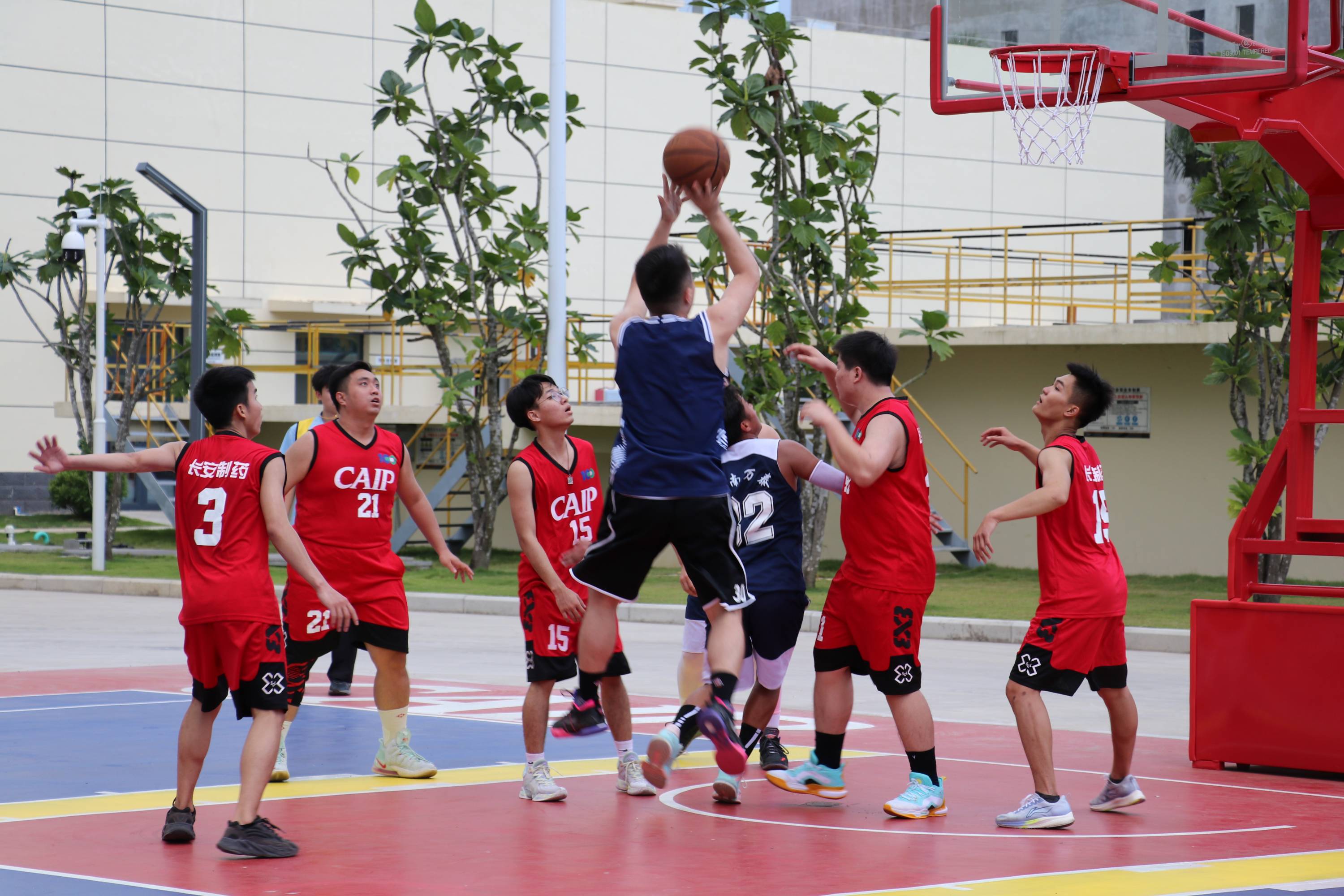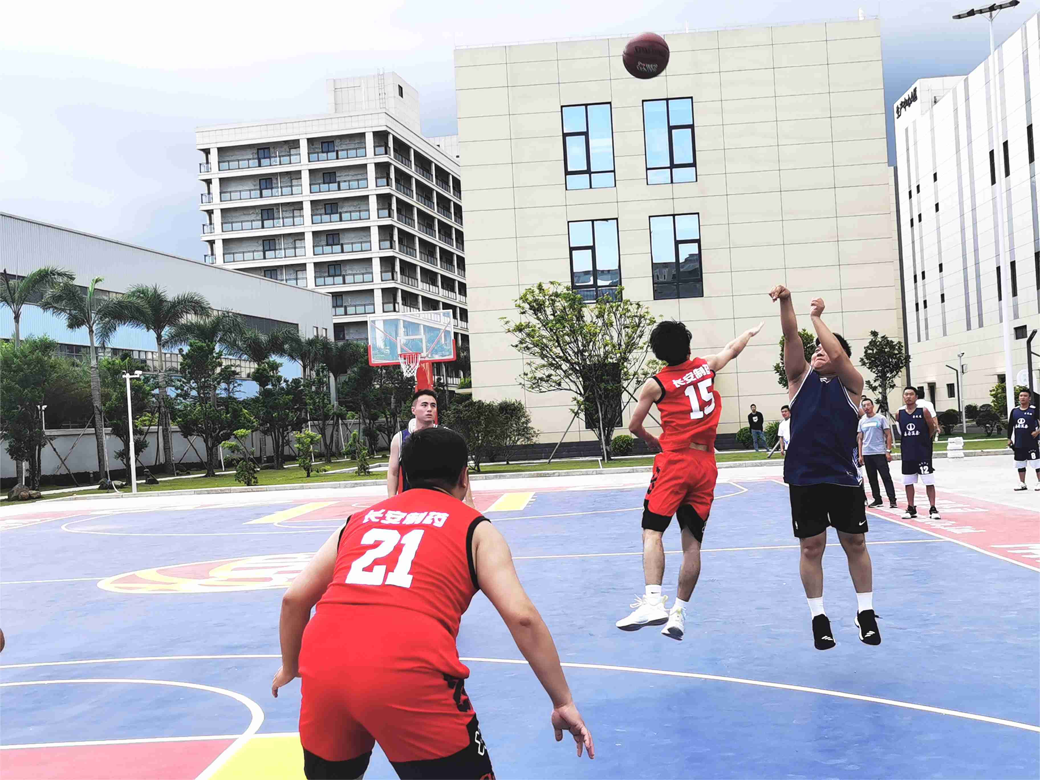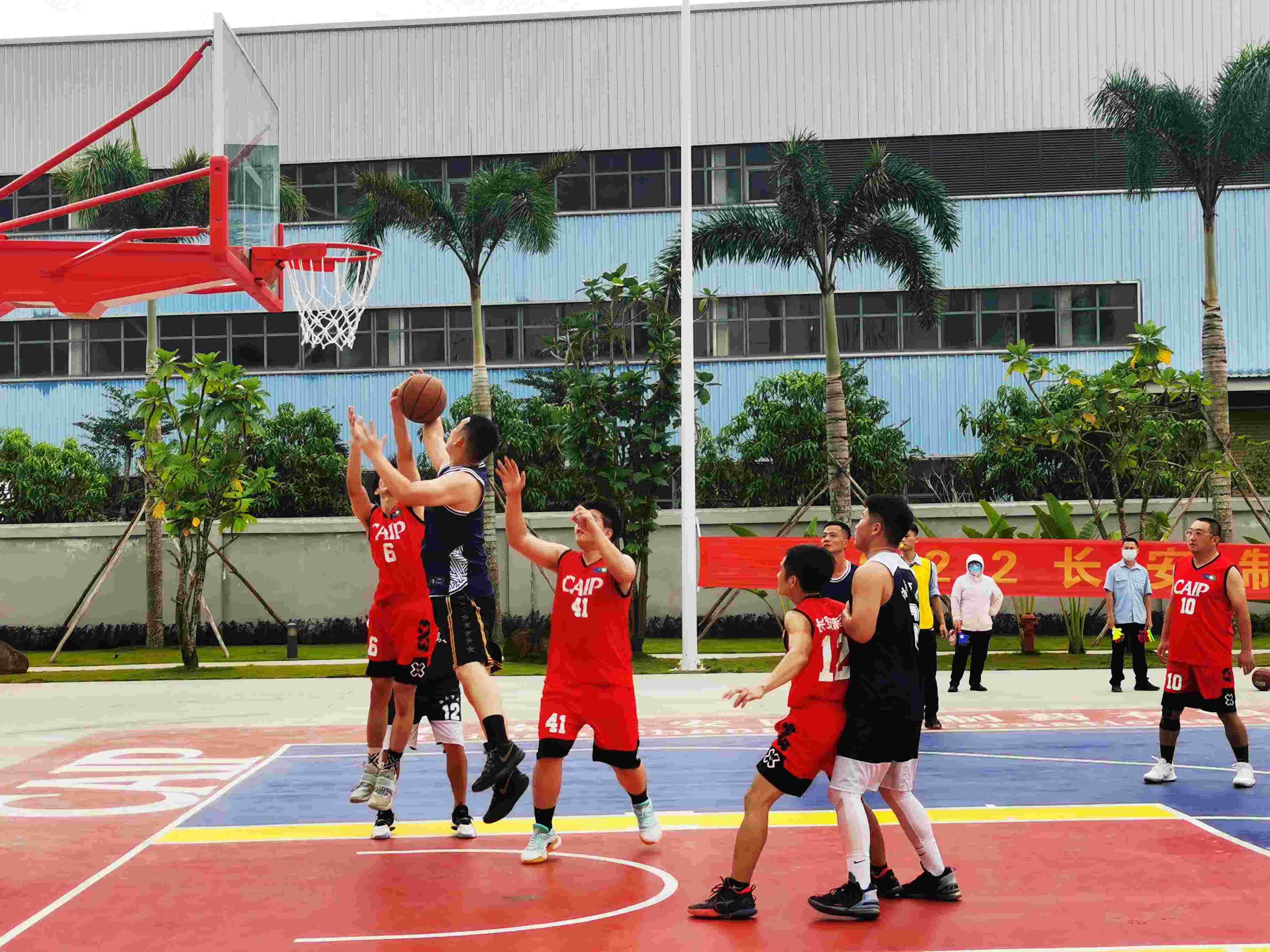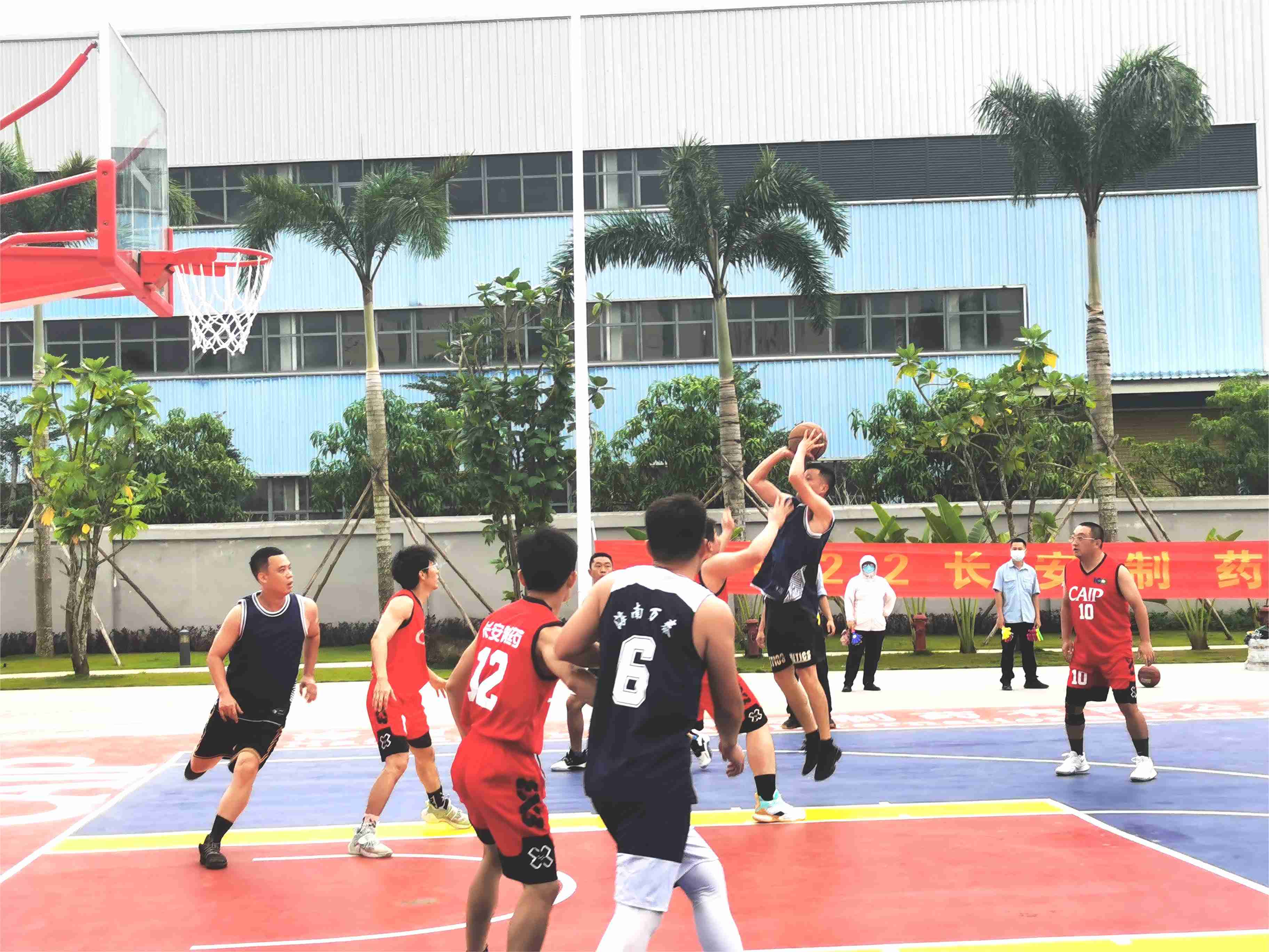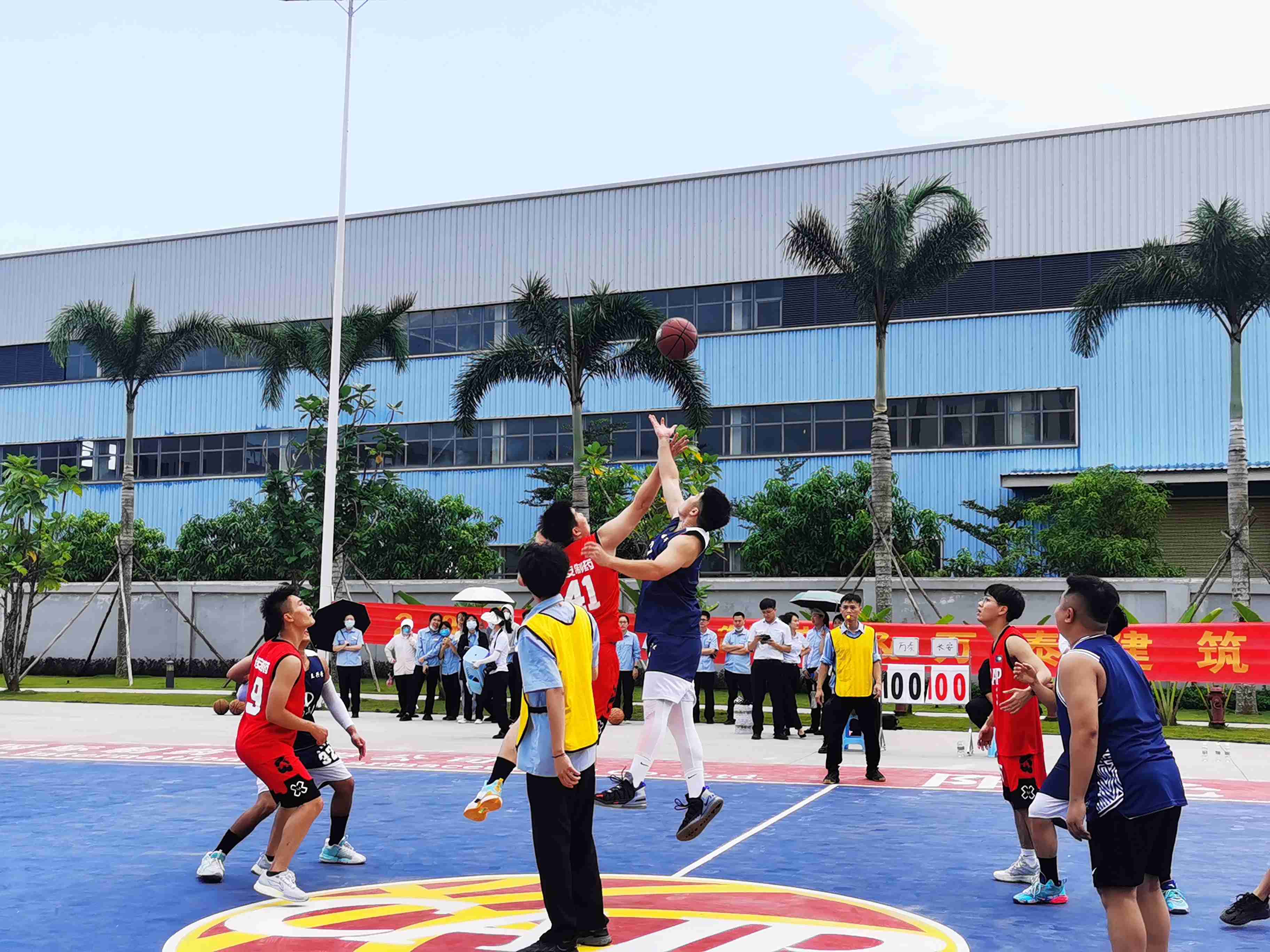 文體活動(dòng)凝心聚力,籃球大賽點(diǎn)燃激情。為豐富員工業(yè)余精神文化生活,樹立全民健身,自強(qiáng)不息的理念,2022年11月28日,萬泰公司與所承建項(xiàng)目建設(shè)方——海南長安國際制藥有限公司聯(lián)合舉辦籃球友誼賽,雙方都組織了優(yōu)秀代表隊(duì)參賽。貴州益佰制藥股份有限公司副總經(jīng)理、海南長安國際制藥有限公司總經(jīng)理汪立冬等一行,萬泰公司工會(huì)主席顏利率隊(duì)參加本次活動(dòng)。