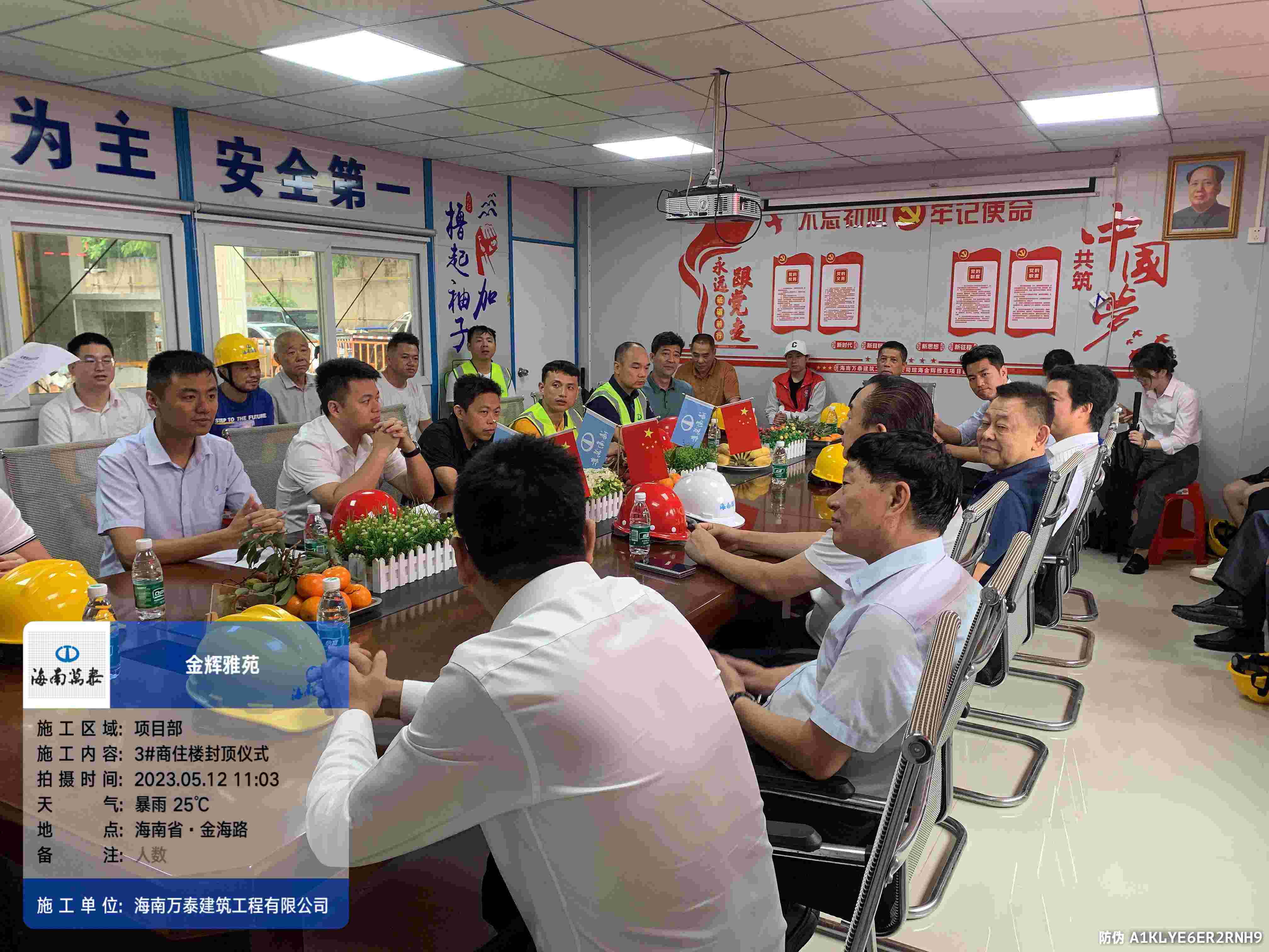 金梁拔地千年固,玉柱擎天萬事興。2023年5月12日上午,海南萬泰承建的瓊海金輝雅苑項(xiàng)目喜封金頂,封頂儀式在項(xiàng)目工地現(xiàn)場(chǎng)圓滿舉辦,海南輝景房地產(chǎn)開發(fā)有限責(zé)任公司董事長劉輝、股東文靖杰、總經(jīng)理陳小勇,海南萬泰建筑工程有限公司常務(wù)副總經(jīng)理顏利、工程一處總助袁軍、工程部副部長張豪杰、項(xiàng)目經(jīng)理劉達(dá)濱以及監(jiān)理等參與和支持項(xiàng)目建設(shè)的各級(jí)領(lǐng)導(dǎo)出席了本次活動(dòng),共同見證這一喜慶時(shí)刻。