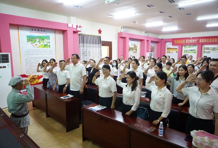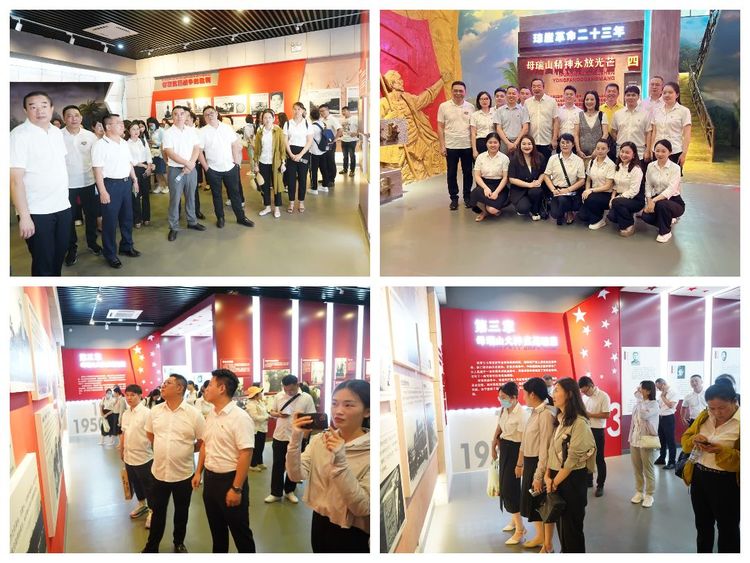 活動第一站來到了定安縣母瑞山革命根據(jù)地紀念園。大家首先參觀了革命歷史博物館,一張張革命的照片展現(xiàn)了母瑞山紅軍革命奮斗史,一件件無聲的遺物令人夢回曾經(jīng)革命時代。通過認真聆聽博物館講解員的娓娓道來,生動形象的講述,大家深入了解了母瑞山革命根據(jù)地的發(fā)展歷程,這個地方曾在瓊崖人民堅持武裝斗爭二十三年紅旗不倒光輝歷程中起到了舉足輕重的作用,凝結(jié)著“崇高理想、堅定信念,勇于獻身,相信群眾、依靠群眾,自力更生、艱苦奮斗”的母瑞山精神,對那段艱苦卓絕的歲月有了新的認識和領悟。隨后,黨員們懷著對革命烈士崇敬的心情,在王文明、馮白駒的銅像前為革命先輩默哀一分鐘和三鞠躬,并重溫了入黨誓詞。