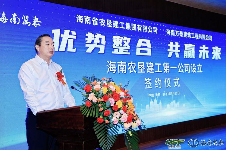 為致力于加大建筑產(chǎn)業(yè)創(chuàng)新孵化,推進(jìn)建筑業(yè)轉(zhuǎn)型升級(jí),高質(zhì)量高標(biāo)準(zhǔn)助力海南自貿(mào)港建設(shè),2023年9月12日,海南萬(wàn)泰建筑工程有限公司與海南省農(nóng)墾建工集團(tuán)有限公司正式達(dá)成合作共識(shí),合資設(shè)立“海南農(nóng)墾建工第一公司”,雙方簽約儀式在海口迎賓館圓滿舉行,預(yù)示著全新的“農(nóng)墾建工一號(hào)”在海南自貿(mào)港將揚(yáng)帆起航。