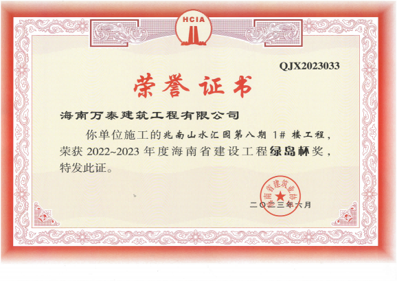 金秋九月,碩果累累。近日,海南萬泰建筑工程有限公司承建的兆南·山水匯園第八期1#樓項(xiàng)目喜獲海南省住房和城鄉(xiāng)建設(shè)廳2022-2023年度海南省建設(shè)工程“綠島杯”獎(jiǎng)!