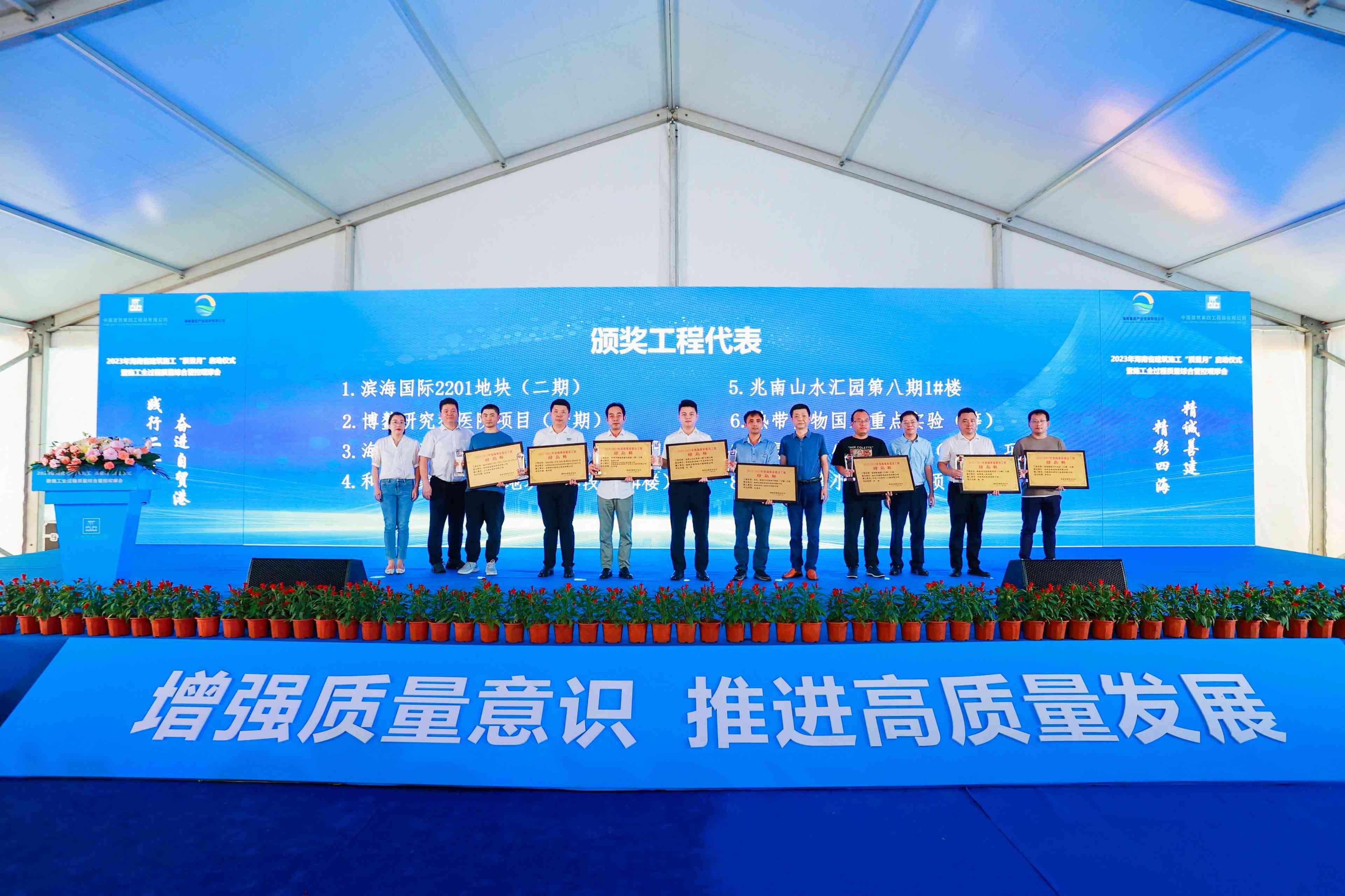 2023年9月13日,海南省住建廳舉辦了2023年海南省建筑施工“質(zhì)量月”啟動(dòng)儀式暨施工全過程質(zhì)量綜合管控觀摩會(huì)。海南萬泰建筑工程有限公司作為榮獲2022-2023年度海南省建設(shè)工程“綠島杯”獎(jiǎng)的8家企業(yè)代表之一上臺(tái)接受省住建廳副廳長(zhǎng)林詩輝、省質(zhì)安局局長(zhǎng)蔡和林、??谑匈|(zhì)監(jiān)站站長(zhǎng)符志明、省住建廳質(zhì)安處副處長(zhǎng)韓苗等領(lǐng)導(dǎo)的頒獎(jiǎng),萬泰公司工程部副部長(zhǎng)張豪杰代表公司上臺(tái)領(lǐng)獎(jiǎng)。