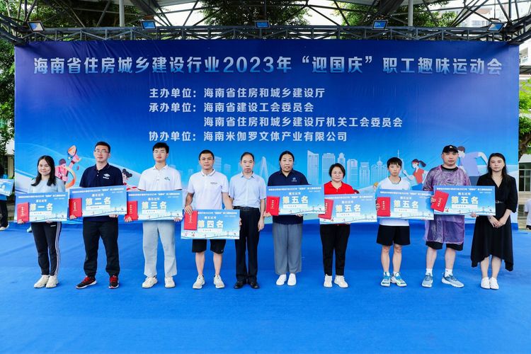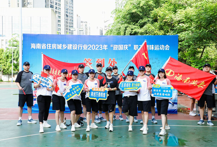 為推動全民健身事業(yè)高質量發(fā)展,豐富職工文體生活,增強職工體質,提升企業(yè)的團結向心力、凝聚力,2023年9月16日,海南萬泰建筑工程有限公司黨支部、工會參加了由省住建廳舉辦的海南省住房城鄉(xiāng)建設行業(yè)2023年“迎國慶”職工趣味運動會,海南省農林水利交通建設工會常務副主席吳清新、省建設工會常務副主席劉志偉、省住建廳行業(yè)黨委專職副書記李述朝等領導參加本次活動,來自省住建廳機關、直屬單位及建設工會各基層工會的36支隊伍、500余名隊員投身賽場、一展風采。海南萬泰代表隊共派出1名領隊、17名參賽選手參與這場體育盛宴。