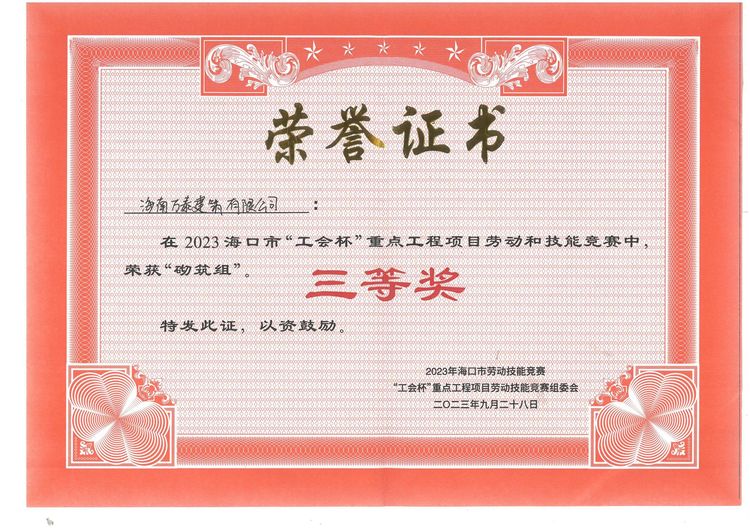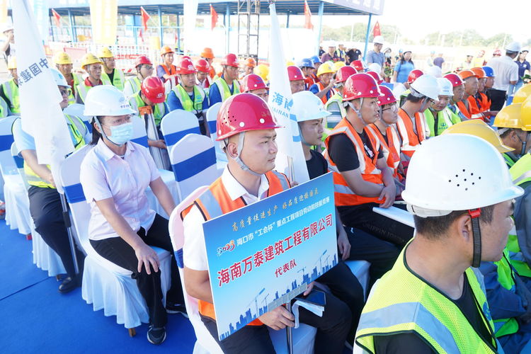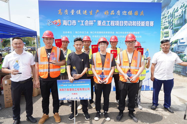 為進一步弘揚勞模工匠精神和發(fā)揮職工先進示范帶頭作用,推動企業(yè)高質(zhì)量發(fā)展 ,9月28日上午,由海口市總工會、??谑邪l(fā)展改革委員會、海口市住房和城鄉(xiāng)建設(shè)局主辦,??谑薪ㄖI(yè)協(xié)會、中海實業(yè)有限責(zé)任公司、中化學(xué)建設(shè)(海南)有限公司承辦的2023??谑袆趧蛹寄芨傎?建筑行業(yè)技能比賽,在由中化學(xué)建設(shè)(海南)有限公司承建的中國海油深海能源開發(fā)總指揮部基地項目01地塊項目部隆重舉行。來自海南萬泰建筑工程有限公司、中化學(xué)建設(shè)(海南)有限公司、中國建筑第五工程局有限公司等9家海南省建筑業(yè)企業(yè),共計110名參賽選手同臺競技,互相角逐,賽出水平,展現(xiàn)風(fēng)采。海南萬泰公司總經(jīng)理顏利、黨支部書記曹珊珊及總經(jīng)辦、工程部、綜合部有關(guān)人員參加本次活動。