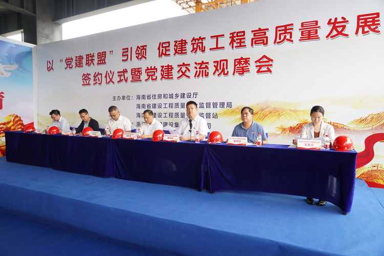 為深入學(xué)習(xí)貫徹習(xí)近平新時(shí)代中國(guó)特色社會(huì)主義思想,深化黨建聯(lián)創(chuàng)共建,推動(dòng)黨建工作進(jìn)一步走深走實(shí),按照省質(zhì)安局的通知要求,近日,海南萬(wàn)泰公司黨支部組織工程部、綜合部等有關(guān)人員在浙江三建江畔濠庭項(xiàng)目參加了海南省建設(shè)工程質(zhì)量安全監(jiān)督管理局黨建聯(lián)盟簽約儀式暨黨建交流觀摩會(huì)。 省質(zhì)安局黨支部書(shū)記、局長(zhǎng)蔡和林主持了會(huì)議。