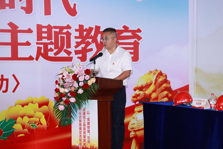 ??谑薪ㄔO(shè)工程質(zhì)量安全監(jiān)督站黨委書(shū)記、站長(zhǎng)符志明在講話(huà)中表示將以江東片區(qū)“黨建聯(lián)盟”為紐帶,進(jìn)一步做好服務(wù)企業(yè)的各項(xiàng)工作,推動(dòng)工程項(xiàng)目質(zhì)量安全發(fā)展。