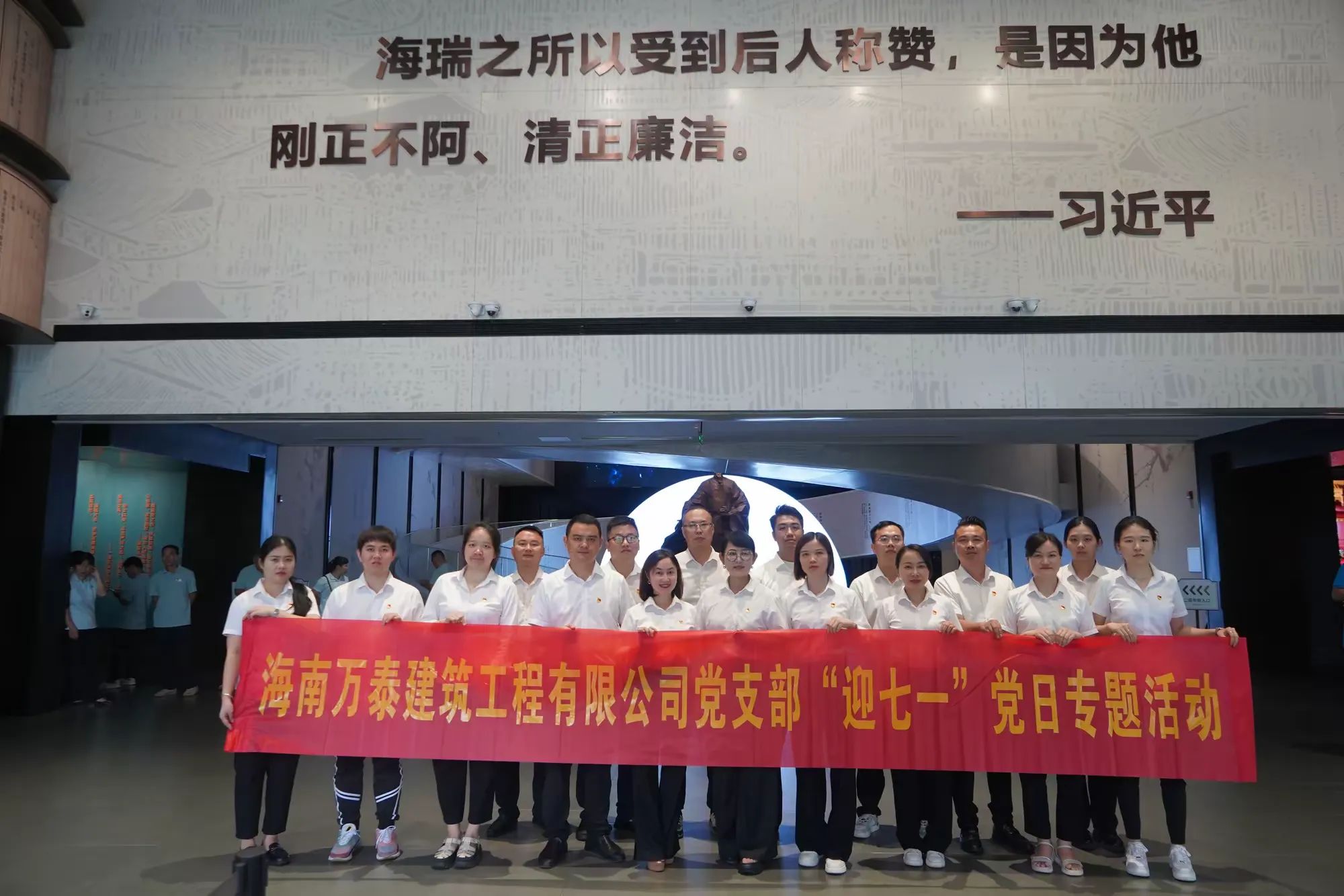 在參觀海瑞歷史文化展覽館的過(guò)程中,大家通過(guò)聆聽(tīng)講解、觀摩實(shí)物及生平復(fù)原場(chǎng)景等形式,全面了解了海瑞的生平事跡和為官之道。海瑞的清廉正直、為民請(qǐng)命的精神深深打動(dòng)了在場(chǎng)的每一個(gè)人。在場(chǎng)的人紛紛表示,要以海瑞為榜樣,時(shí)刻保持清醒的頭腦,堅(jiān)守廉潔自律的底線,做到公私分明、清正廉潔。隨后全體人員還進(jìn)行了入黨宣誓,在錚錚誓言中表達(dá)堅(jiān)定不移聽(tīng)黨話、跟黨走,為共產(chǎn)主義奮斗終身的信念和決心。