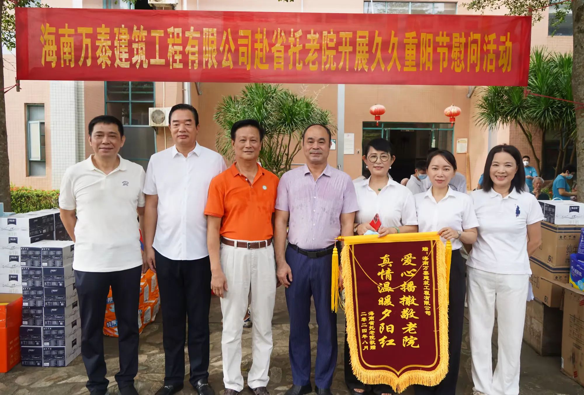 8月19日,為進(jìn)一步發(fā)揚(yáng)企業(yè)愛心之舉,傳播敬老愛老養(yǎng)老的優(yōu)秀傳統(tǒng)文化精神,在中秋、重陽節(jié)即將到來之際,海南萬泰建筑工程有限公司參加了由海口市龍華區(qū)關(guān)工委、龍華區(qū)金貿(mào)街道商會(huì)、海南愛心企家團(tuán)隊(duì)聯(lián)合舉辦的慰問活動(dòng)。公司總經(jīng)理顏利及黨支部、工會(huì)有關(guān)人員參加本次活動(dòng)。