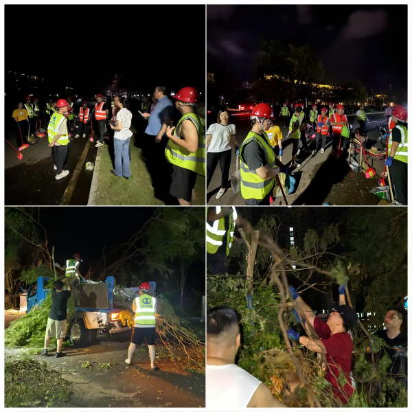 9月8日晚8時,在政府的號召和公司領導的發(fā)動下,廣大黨員職工主動請纓,報名參加災后清障活動。當晚,40名公司支部黨員干部、職工組成了志愿服務隊,并多方調配輪式挖機2臺、運輸車3輛、抓機1臺以及油鋸、掃把等一批小型工具趕赴國興大道開展路面清障工作,你鋸樹、他搬運、我掃地,大家各司其職,默契地參與到這次工作中。至凌晨2時,萬泰公司所負責區(qū)域的清障工作順利完成,路障問題已經(jīng)良好解決,他們以實際行動詮釋著黨員的先鋒模范作用。
