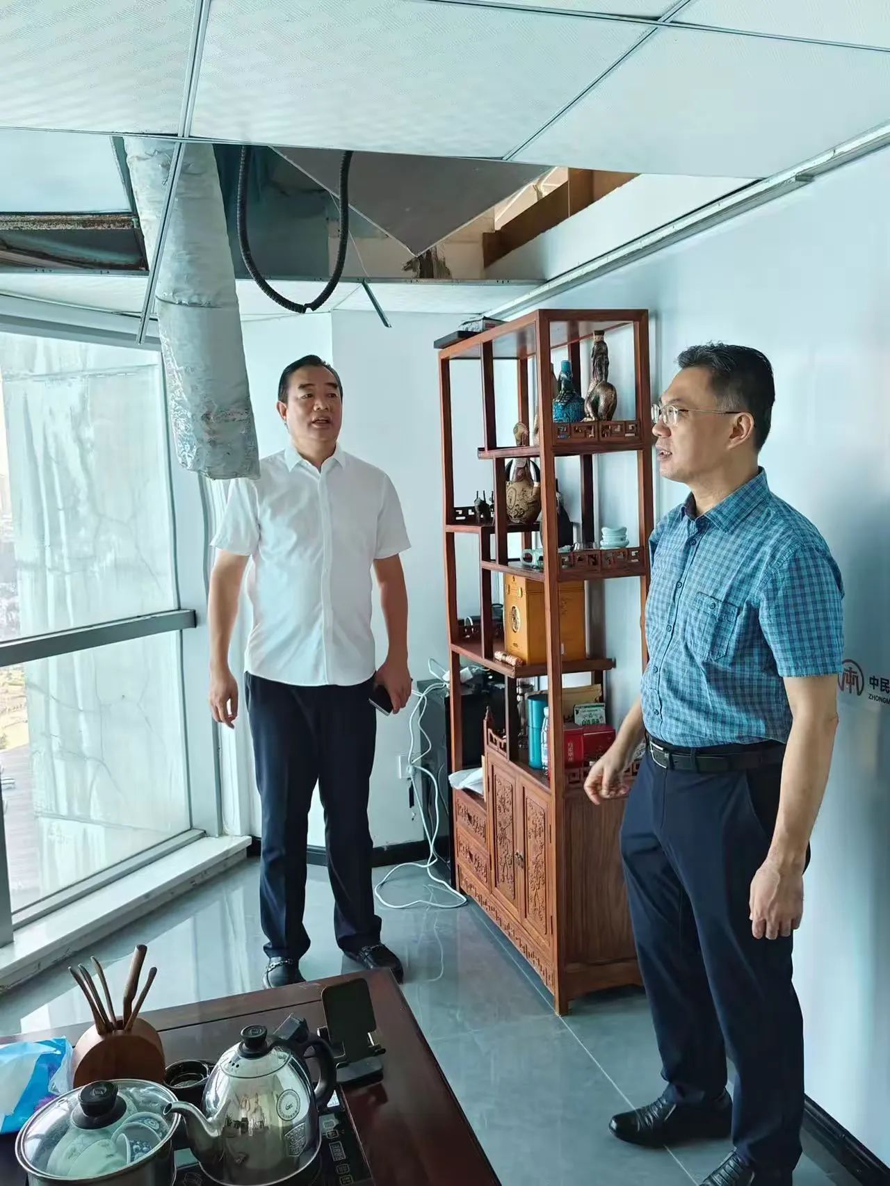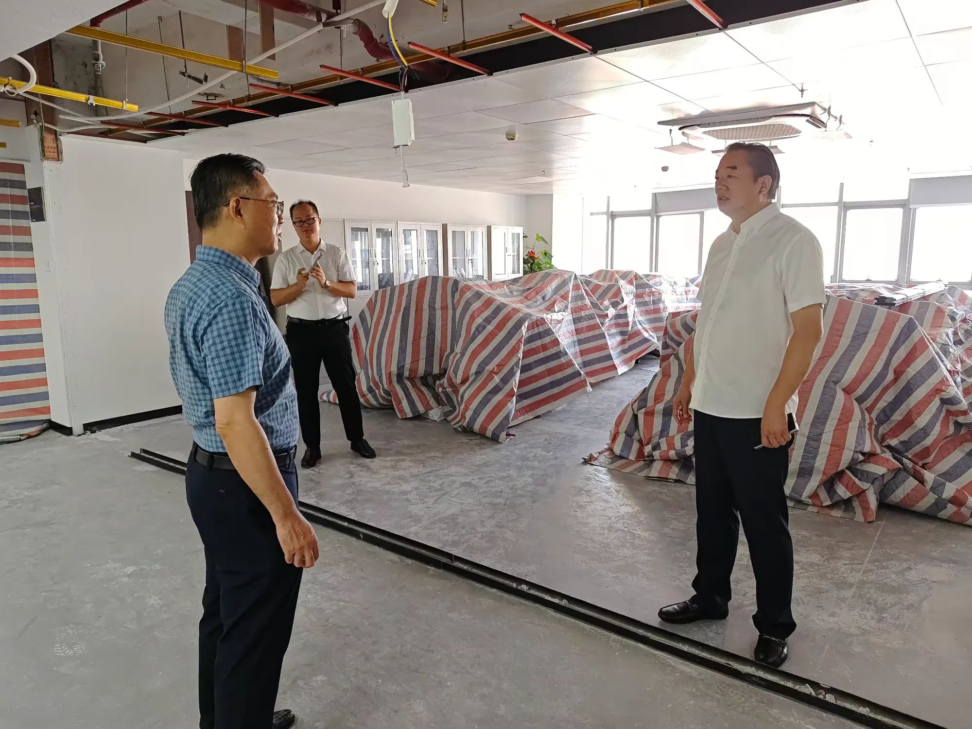 林青主委一行在公司總經(jīng)理顏利的帶領(lǐng)下查看了公司幾個(gè)因臺風(fēng)“摩羯”而受損的辦公區(qū)域。在調(diào)研座談會上,公司總經(jīng)理顏利通過PPT圖片形式向林青主委一行介紹了本次受災(zāi)受損情況,企業(yè)辦公區(qū)域積水、滲水嚴(yán)重,吊頂脫落、玻璃吹碎、設(shè)備損壞,多個(gè)項(xiàng)目部及工人生活區(qū)板房被吹塌、設(shè)備及電箱圍墻等受到嚴(yán)重破壞。顏利總表示,上述問題給企業(yè)造成了巨大的經(jīng)濟(jì)損失,嚴(yán)重影響了復(fù)工復(fù)產(chǎn)的進(jìn)度,請各級政府部門能夠給予廣大企業(yè)更多的關(guān)懷和幫助,出臺政策及措施助力企業(yè)走出困境。