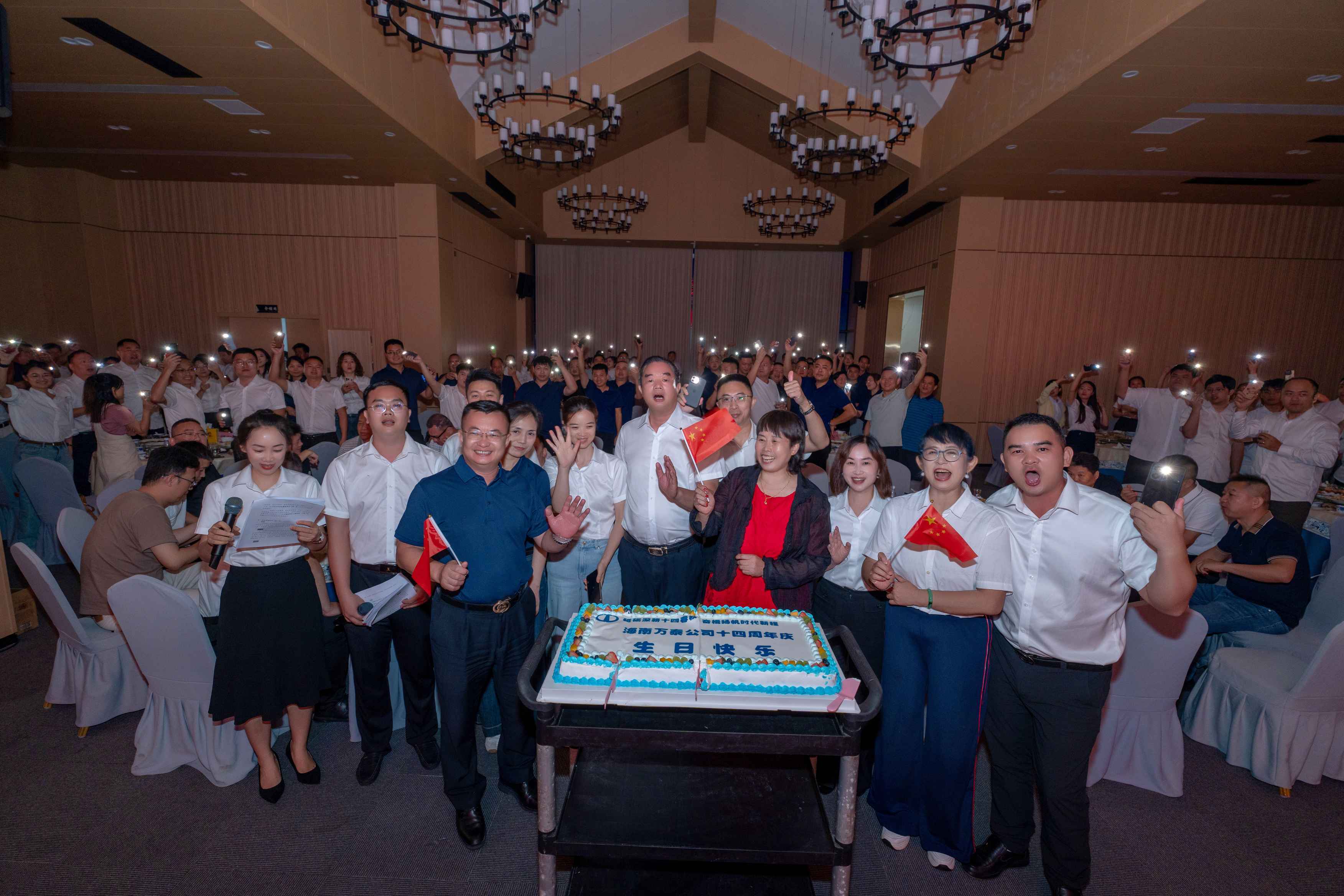 星光璀璨慶華誕,榮耀共享啟新篇。當(dāng)晚,周年慶晚會(huì)在芳園國(guó)際藝術(shù)村聚福樓正式開始,現(xiàn)場(chǎng)160余人共襄盛舉,共同慶祝公司成立十四周年暨中國(guó)共產(chǎn)黨成立104周年。開場(chǎng)舞《苗族魂》中那充滿民族風(fēng)情的舞姿瞬間點(diǎn)燃了全場(chǎng)的氣氛,活動(dòng)也在主持人激情澎湃的開場(chǎng)祝賀聲與全體人員的共唱《國(guó)歌》聲中拉開帷幕。
