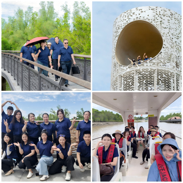 活動(dòng)當(dāng)日,風(fēng)和日麗,晴空萬里,全體人員精神飽滿地開啟了一天行程。上午,公司成員齊聚東寨港紅樹林,在碧波蕩漾的紅樹林濕地,大家乘船探秘、登臨月之塔、漫步生態(tài)棧道,親身感受海南獨(dú)特的自然生態(tài)魅力,并在景區(qū)合影留念,記錄下綠色發(fā)展的企業(yè)擔(dān)當(dāng)。在輕松愉快的氛圍中,團(tuán)隊(duì)凝聚力得到了增強(qiáng)。