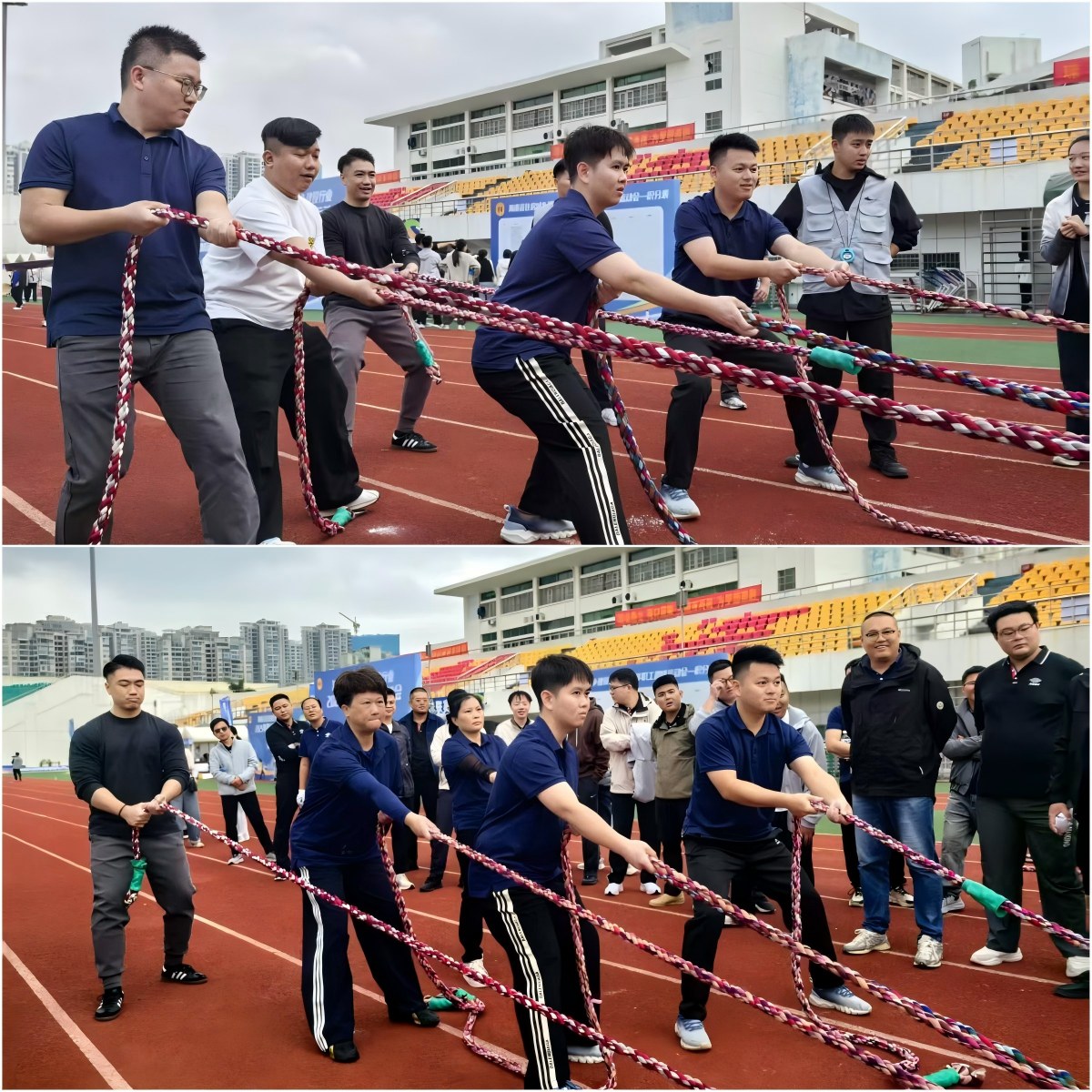 賽場上,趣味項目輪番上演,比賽共分為八個項目,五繩拔河考驗配合默契以及力量比拼,花樣跳繩比拼協(xié)作節(jié)奏,旱地冰壺考驗技術與戰(zhàn)略,以及足球射門、快樂趕豬、接力傳球、企業(yè)漫步、兩人三足等項目更是將賽場氛圍一次次推向高潮。參賽選手們個個精神抖擻、奮勇爭先,在歡聲笑語中揮灑汗水,充分展現(xiàn)了住建行業(yè)廣大職工積極向上、團結協(xié)作的良好精神風貌。
