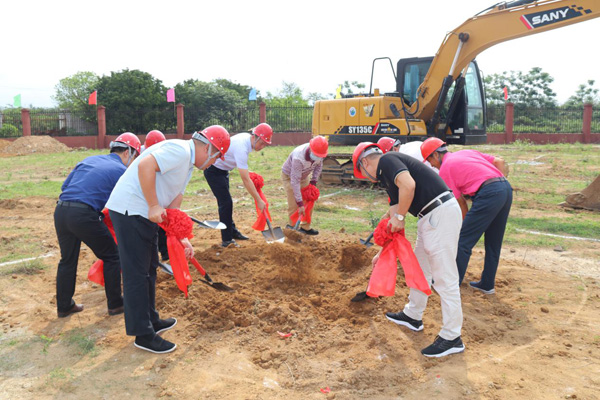 各位領(lǐng)導(dǎo)手執(zhí)鐵鍬為項(xiàng)目奠基鏟土
