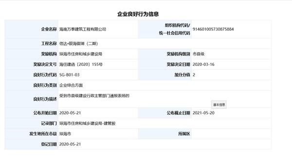 信達(dá)·銀海御湖(二期)項(xiàng)目在瓊海市實(shí)名制信息系統(tǒng)安裝使用情況考核評(píng)價(jià)中獲評(píng)為A級(jí)項(xiàng)目,獲得瓊海住建局表?yè)P(yáng)并予以誠(chéng)信加分2分,且給予我司在瓊海市新開工建設(shè)的工程項(xiàng)目可以依法享有瓊海市農(nóng)民工工資保障金減免政策,最高減免額度為70%的優(yōu)惠措施;三亞育才醫(yī)院建設(shè)項(xiàng)目在疫情期間,我司勇于擔(dān)當(dāng),克服困難,迅速組織建筑工地復(fù)工達(dá)產(chǎn),在抗擊疫情的同時(shí),為三亞市經(jīng)濟(jì)社會(huì)發(fā)展作出了積極貢獻(xiàn),獲得三亞市住建局通報(bào)表?yè)P(yáng)予以誠(chéng)信加分2分。