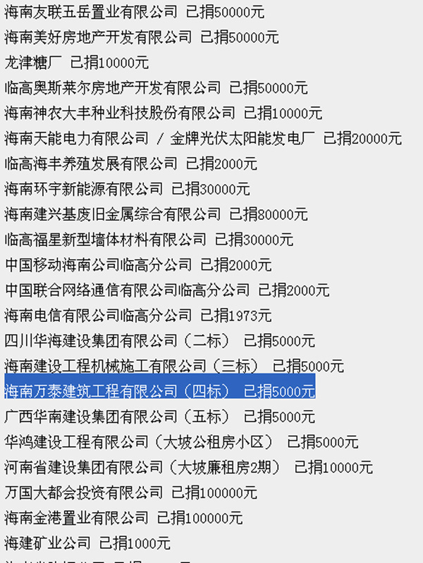 2013年臨高縣“愛心助學(xué)·陽光行動(dòng)”企業(yè)捐款