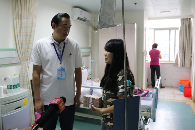 “這是萬泰公司張總和同事們的一點心意,小鄭,祝你愛人早日康復,希望萬泰這個大家庭能更多的幫助你們這個小家庭渡過難關,也期盼你早日重返工作崗位……”2016年7月14日下午,海南萬泰建筑工程有限公司常務副總顏利,代表萬泰公司張總及全體員工到海南省人民醫(yī)院看望萬泰員工鄭琳及患病家屬曾維龍,并送上萬泰張總及全體員工的十萬元愛心捐款。海南省電視臺直播海南節(jié)目全程報道。