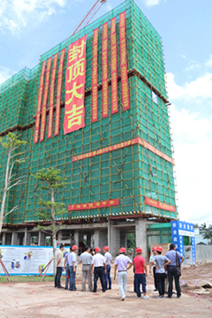 自今年二月份瓊?!靶胚_(dá)?銀海御湖(一期)”項(xiàng)目開工以來,海南萬泰施工團(tuán)隊(duì)不畏艱辛,克服海南高溫多雨的氣候特點(diǎn),保質(zhì)、保量,緊張施工,嚴(yán)格把控項(xiàng)目的各個(gè)施工細(xì)節(jié),“信達(dá)?銀海御湖(一期)”項(xiàng)目9#樓率先完成主體封頂。