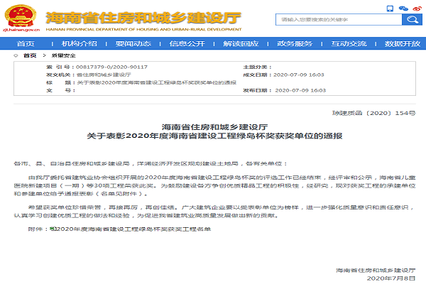 海南萬泰清能·麗景灣一期建安工程喜獲省優(yōu)質(zhì)工程“綠島杯”獎