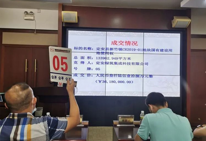 2020年4月17日上午8:30,海南綠筑裝配式產(chǎn)業(yè)基地項目成功摘牌,該項目位于定安縣新竹鎮(zhèn)中線高速公路東側,土地性質(zhì)為二類工業(yè)用地,占地面積200.94畝,總投資6億元。